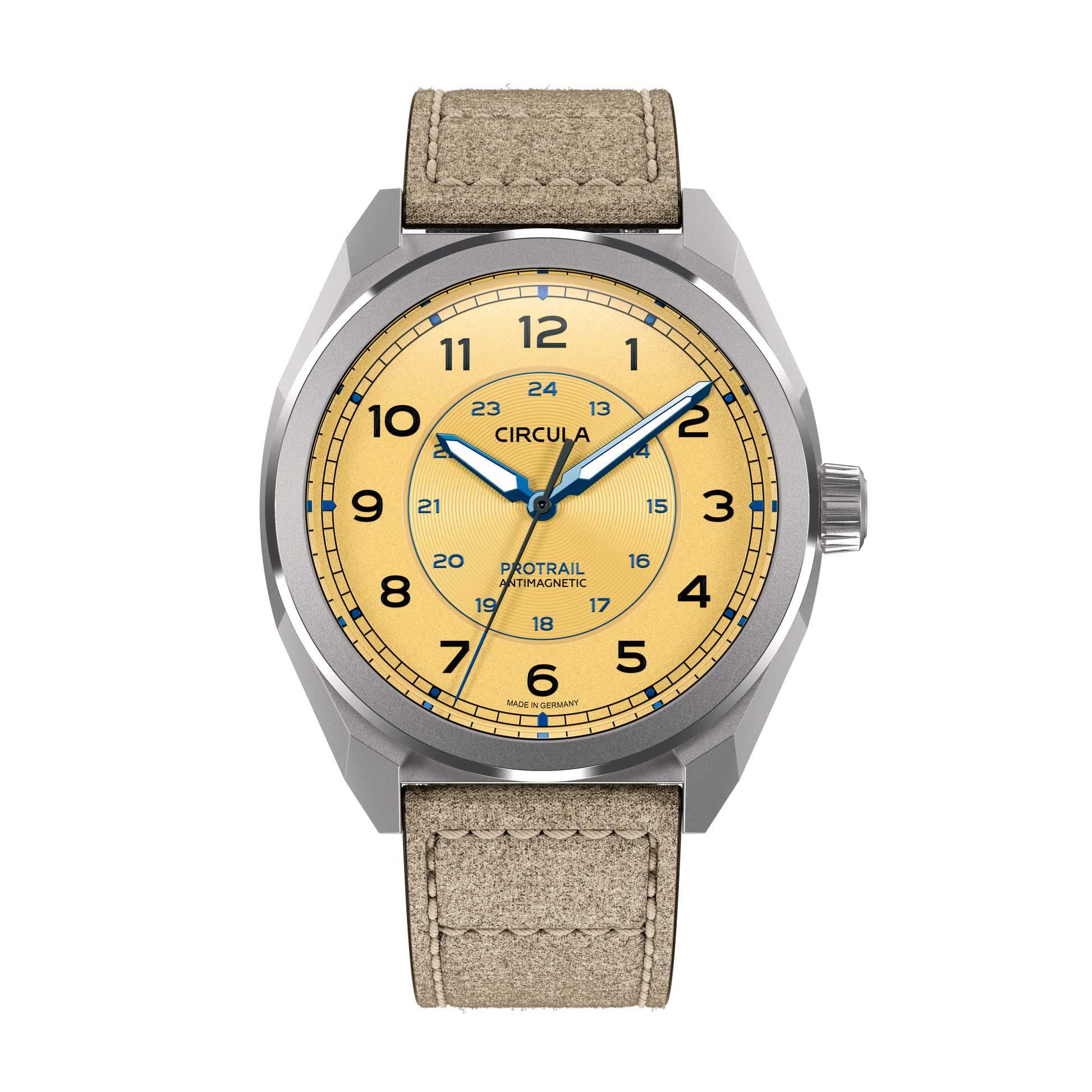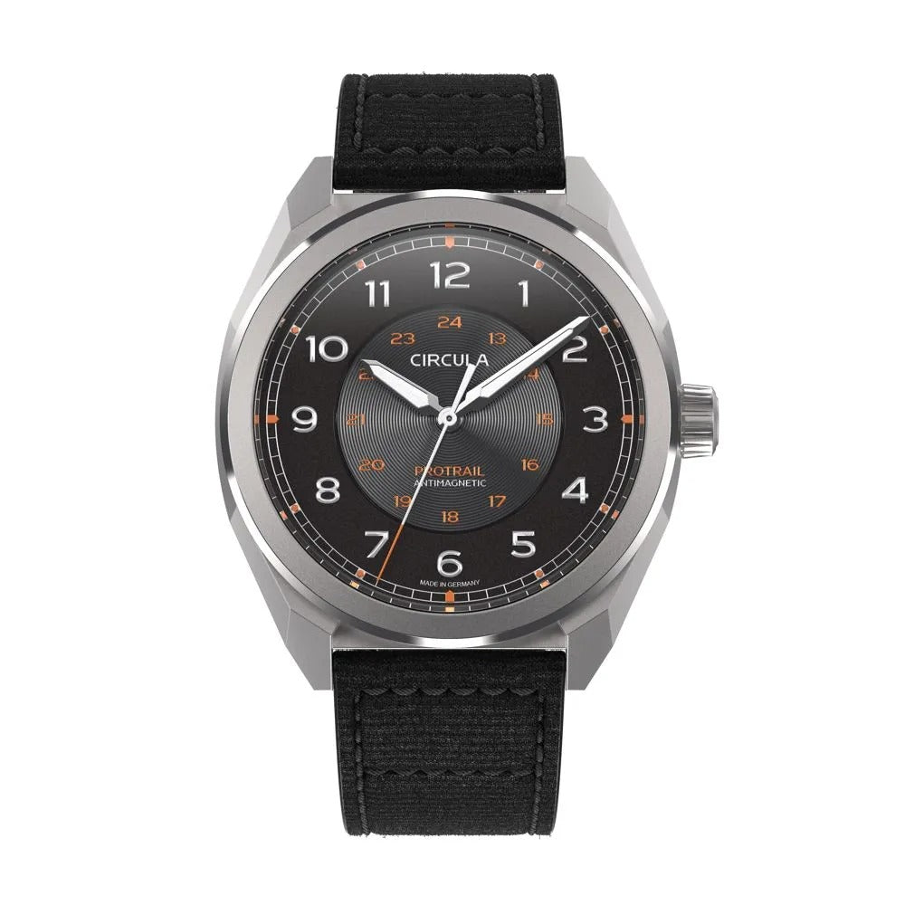 The ProTrail is a robust and functional field watch with high-quality equipment and finishing. The carefully hand-sandblasted stainless-steel case is antimagnetic up to 80,000 A/m and protects the precise Swiss movement inside. Sapphire glass and a special surface treatment of the case ensure maximum scratch resistance. It was jointly developed with over 6,500 votes from the global watch community.
